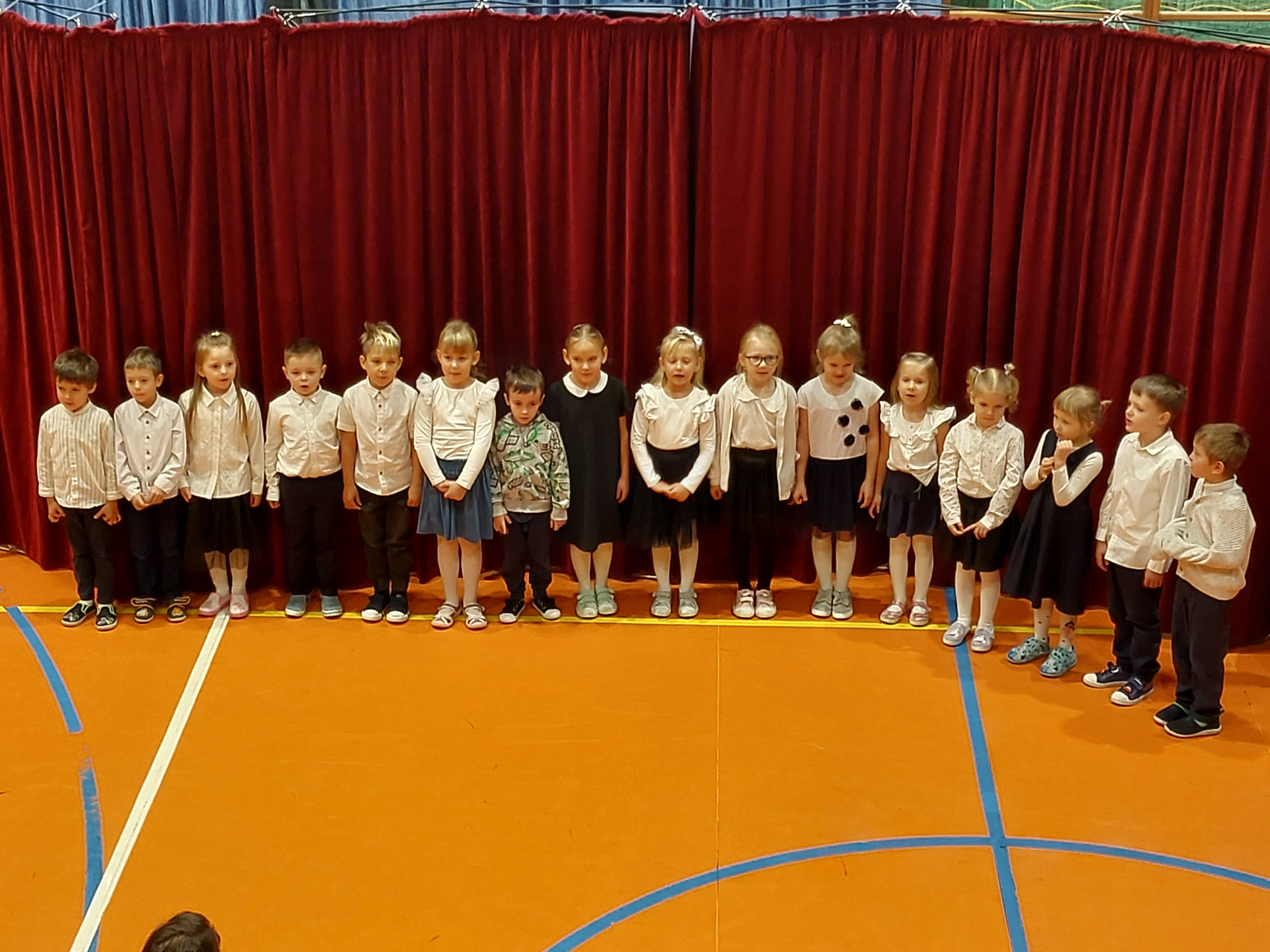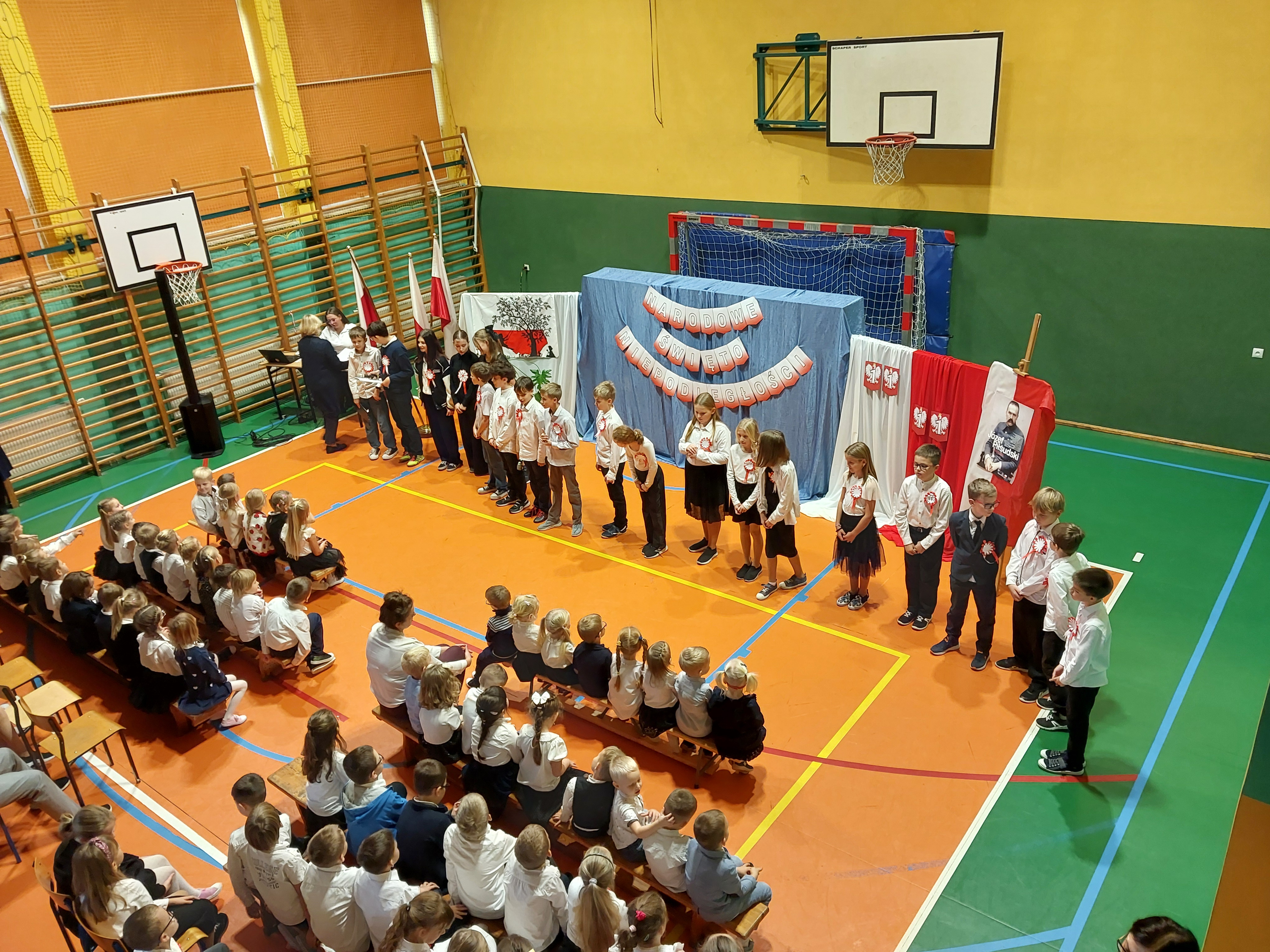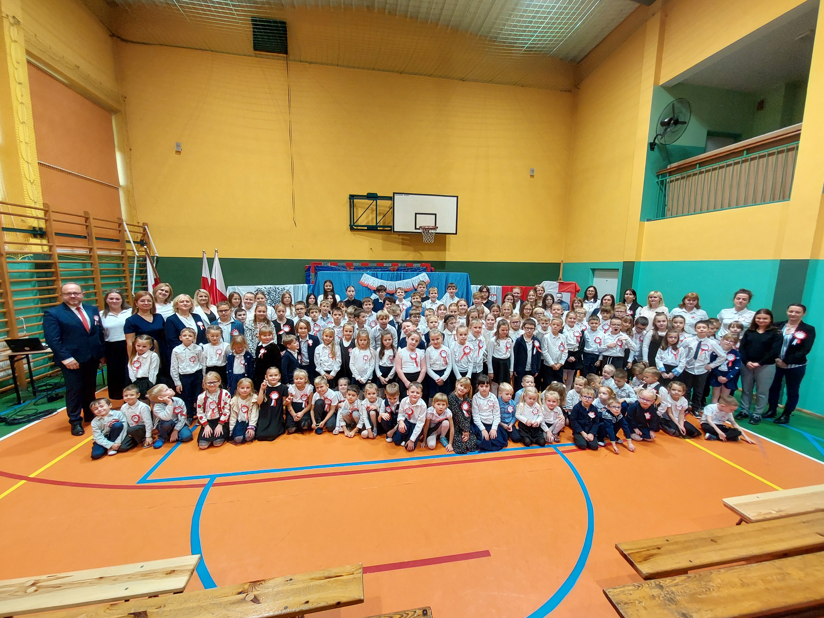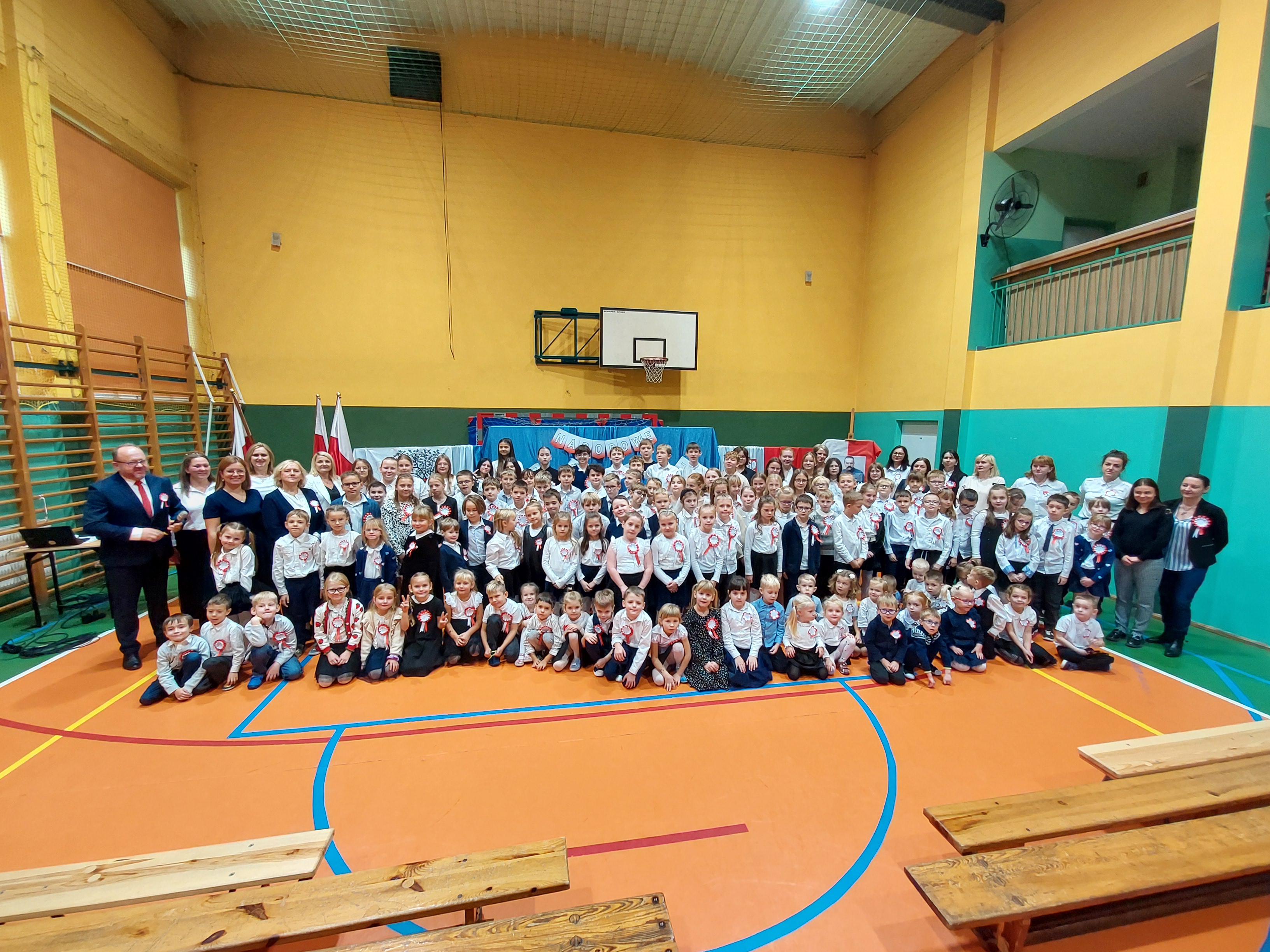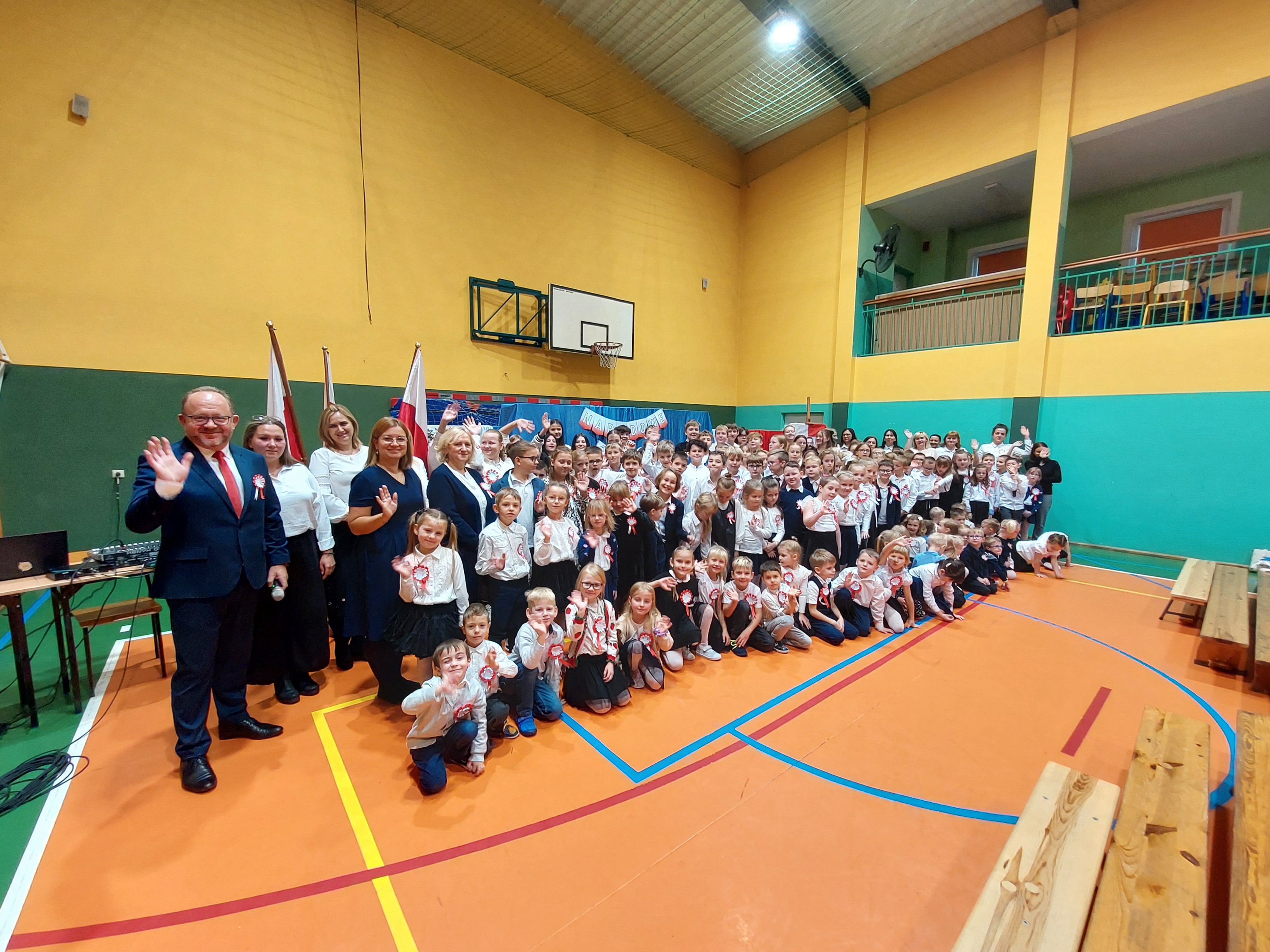 Potem przedszkolaki zaśpiewały patriotyczne piosenki, a klasy 4-7 zaprezentowały krótki występ na temat historii odzyskania przez nasz kraj niepodległości.
