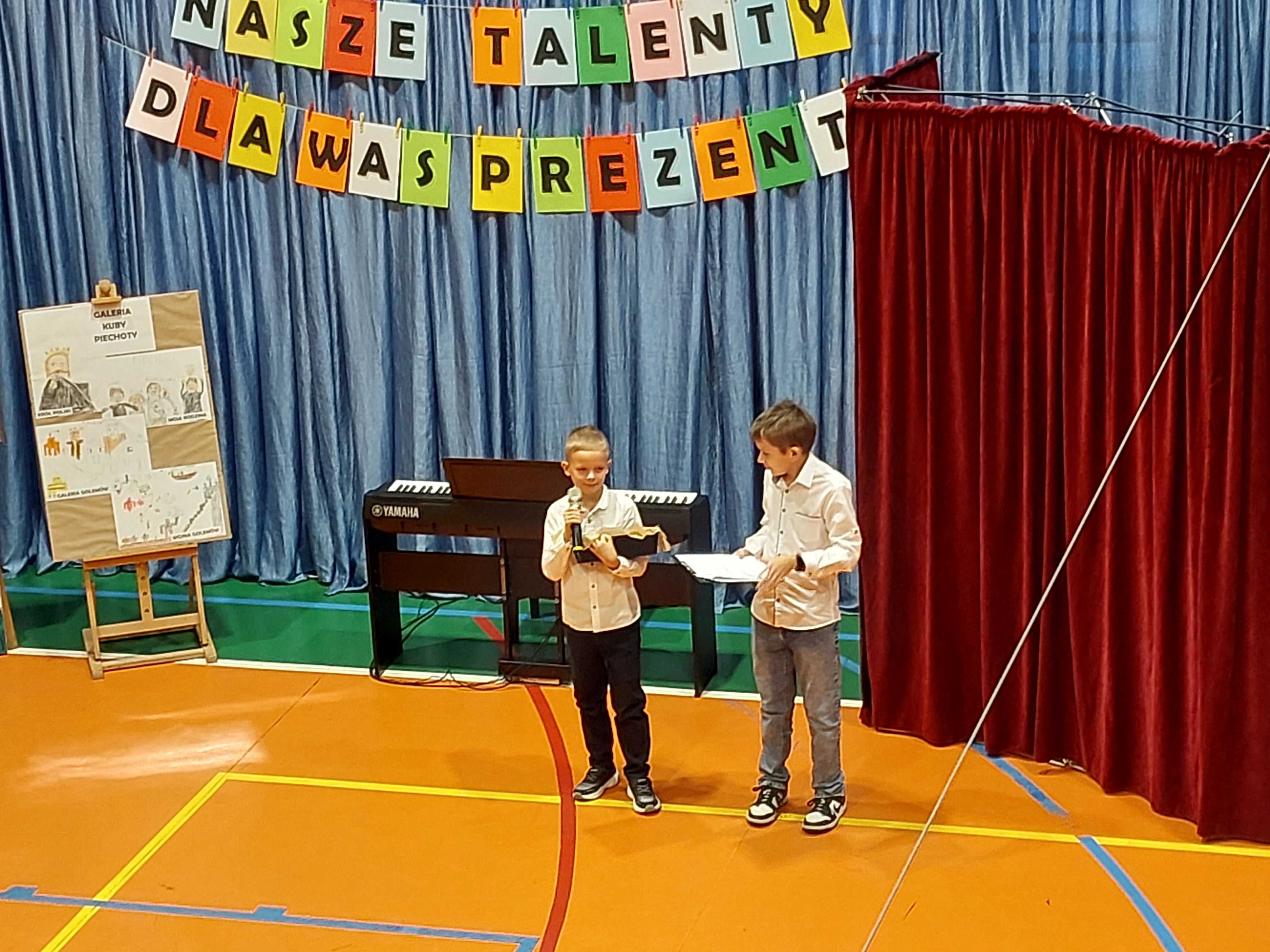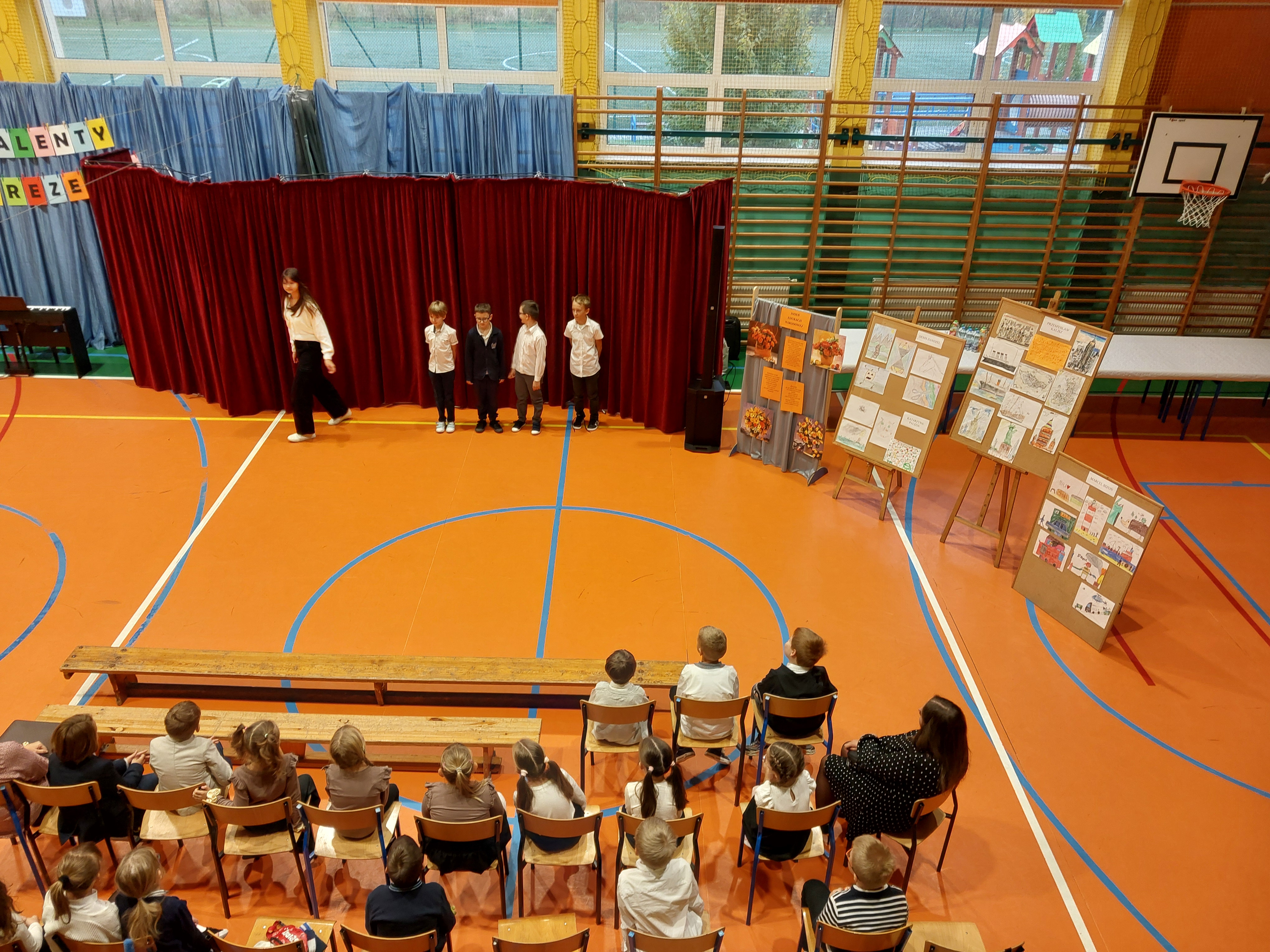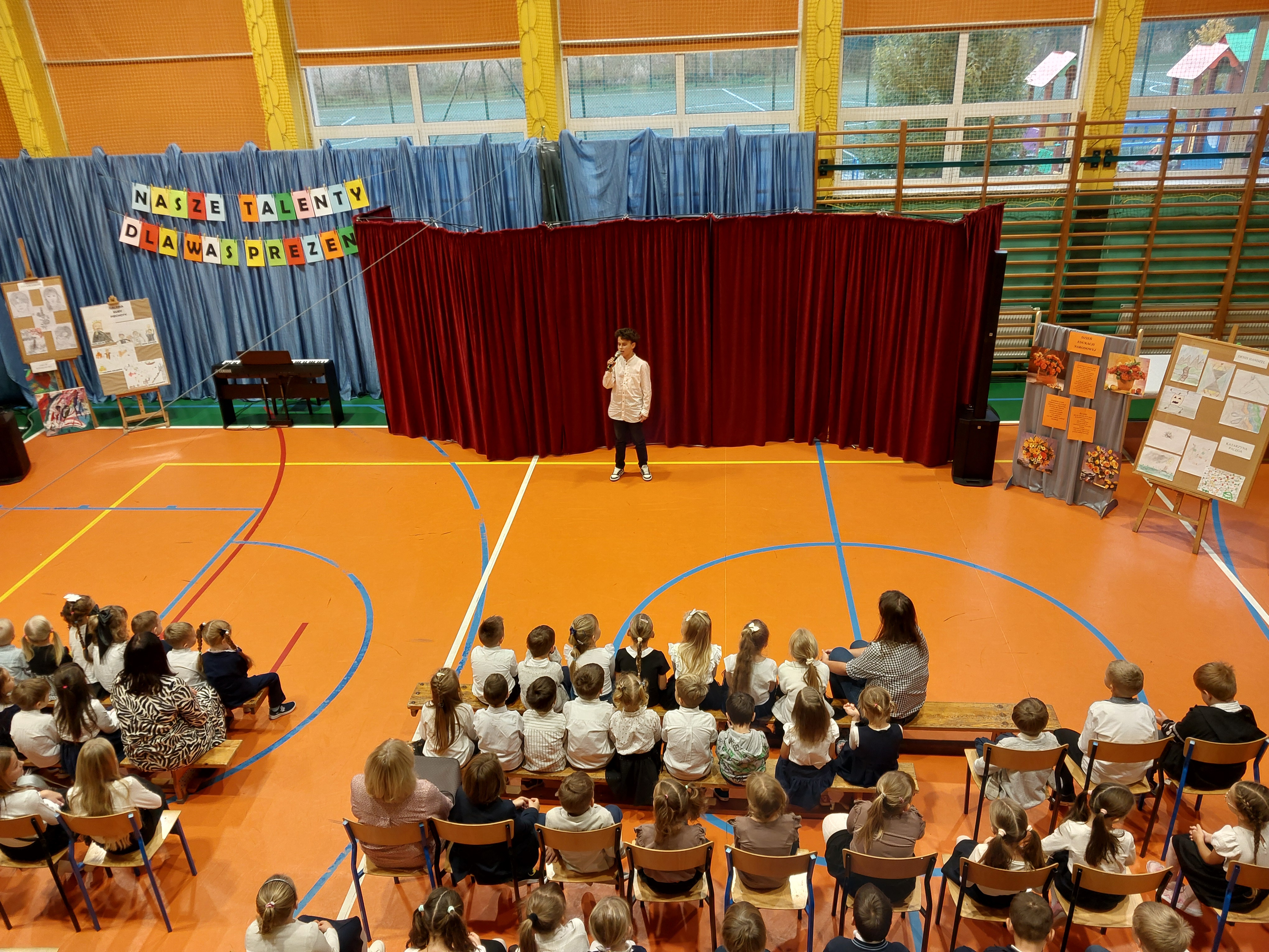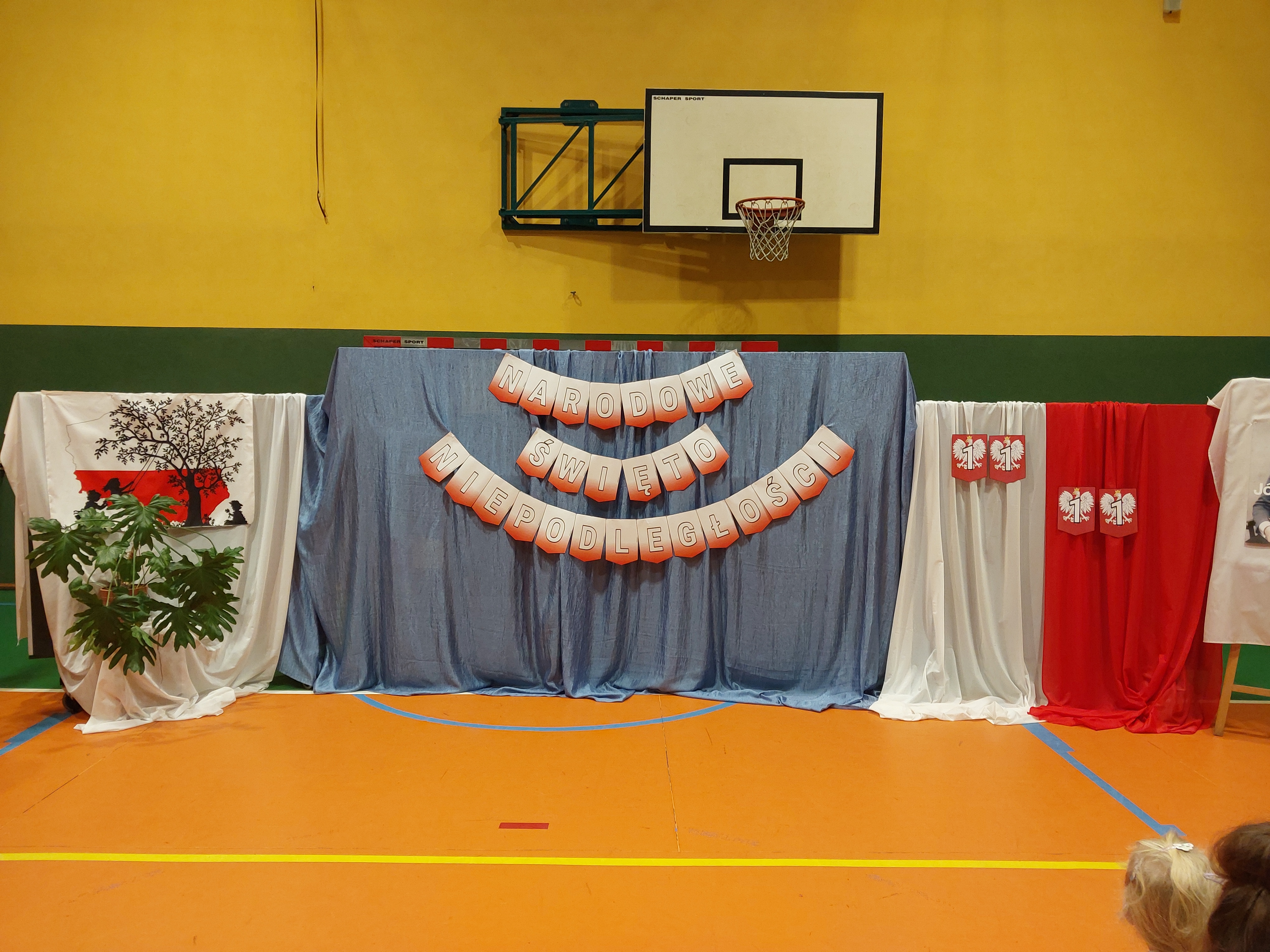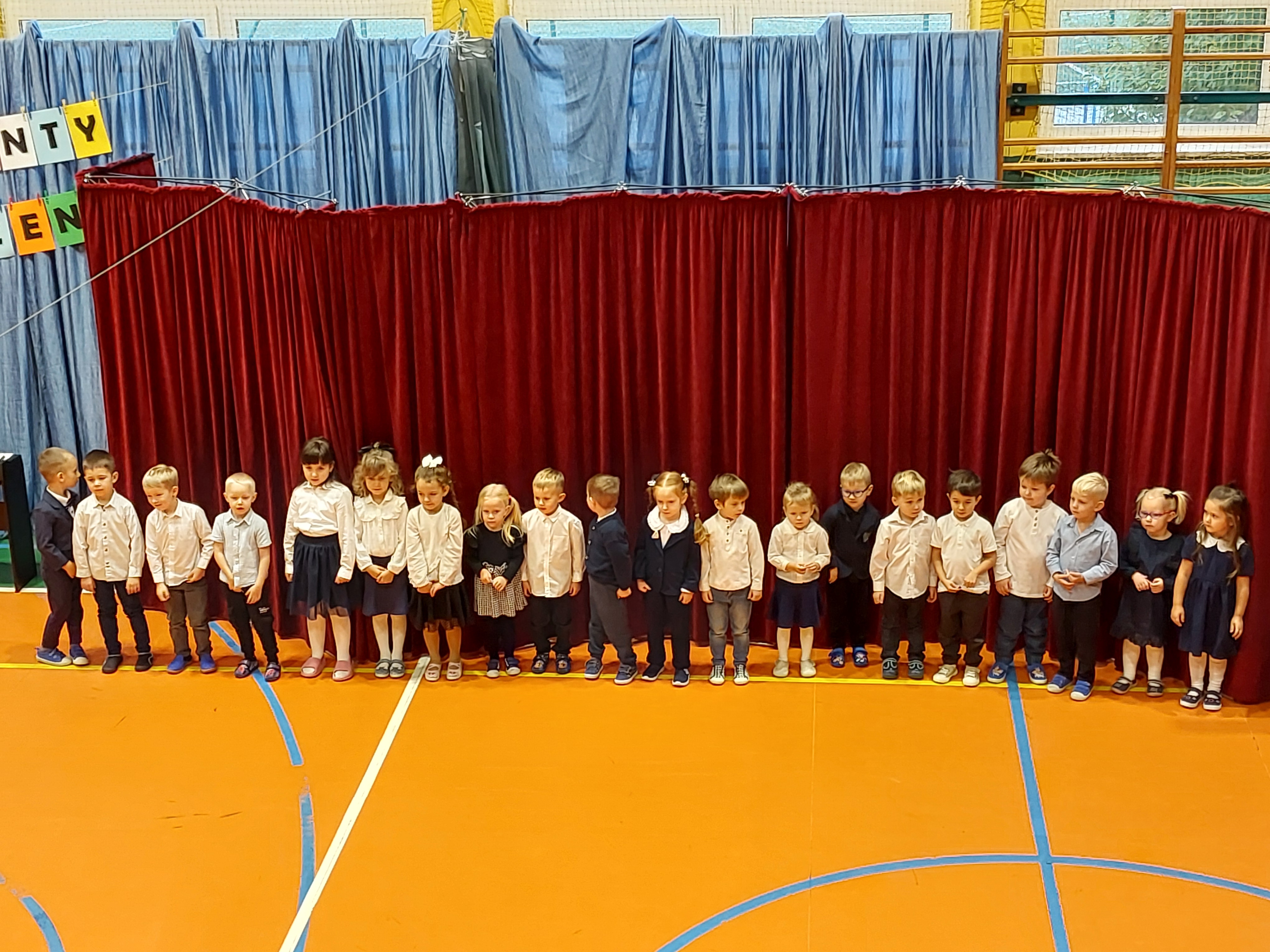 Potem przedszkolaki zaśpiewały patriotyczne piosenki, a klasy 4-7 zaprezentowały krótki występ na temat historii odzyskania przez nasz kraj niepodległości.