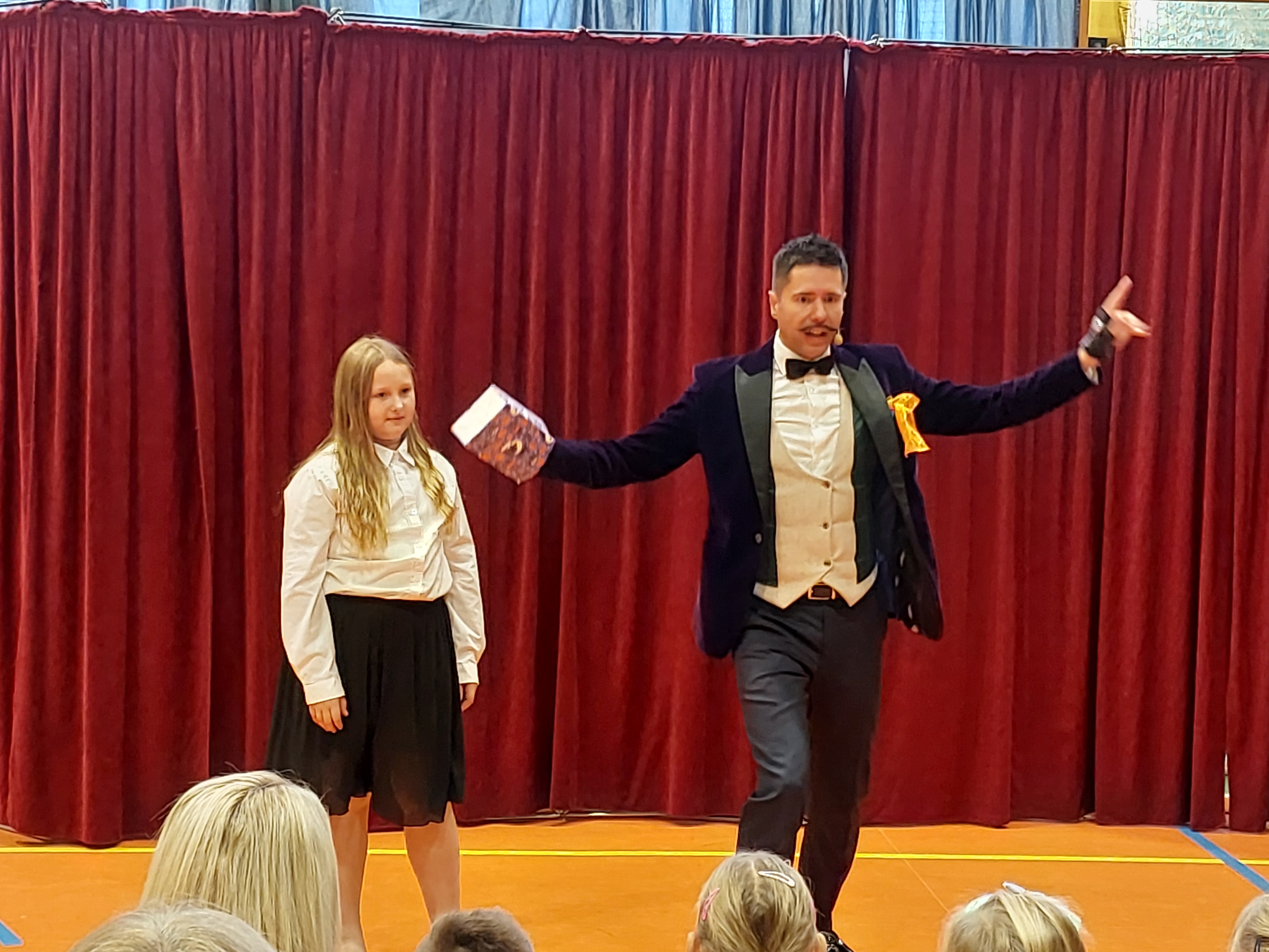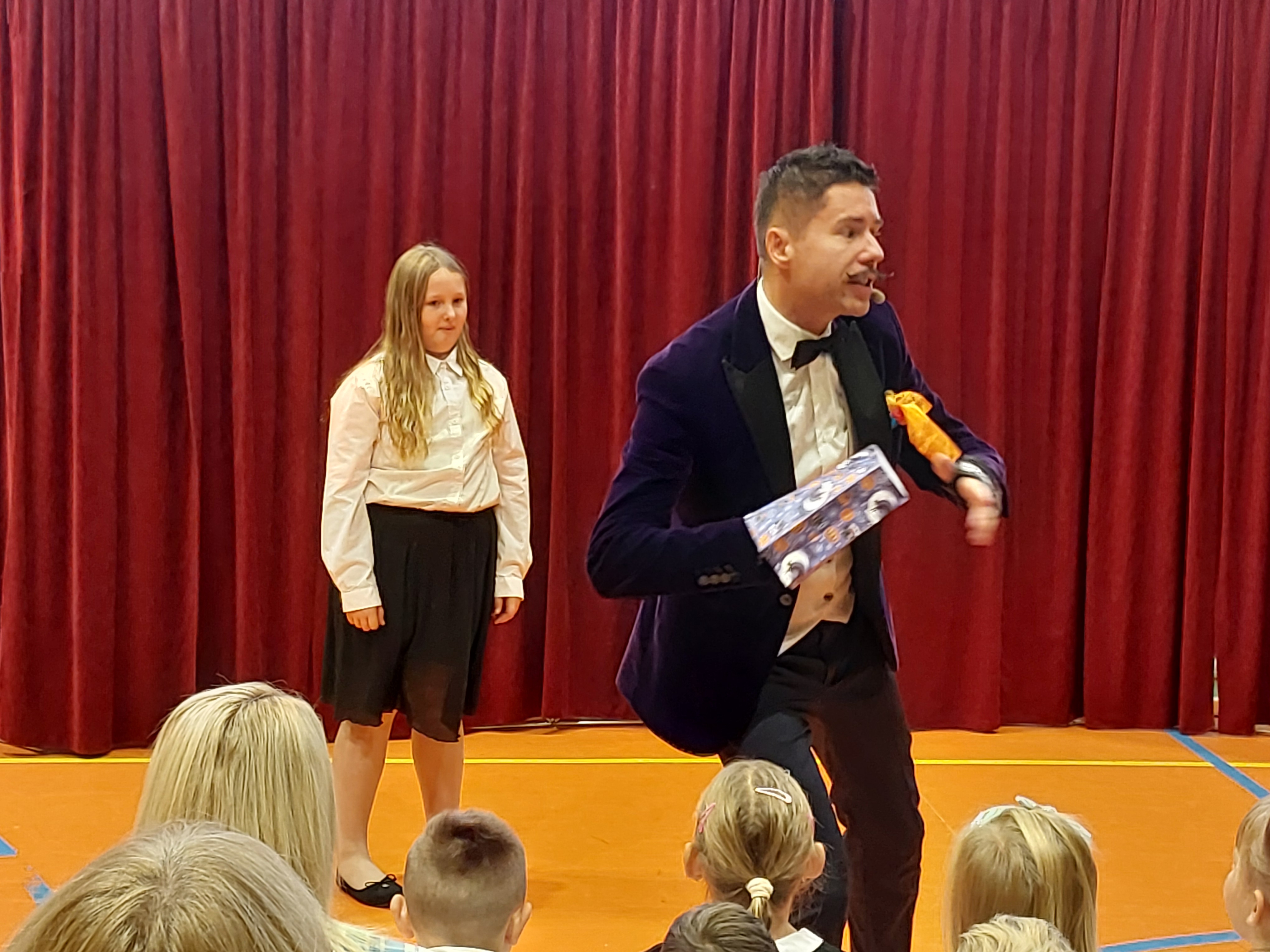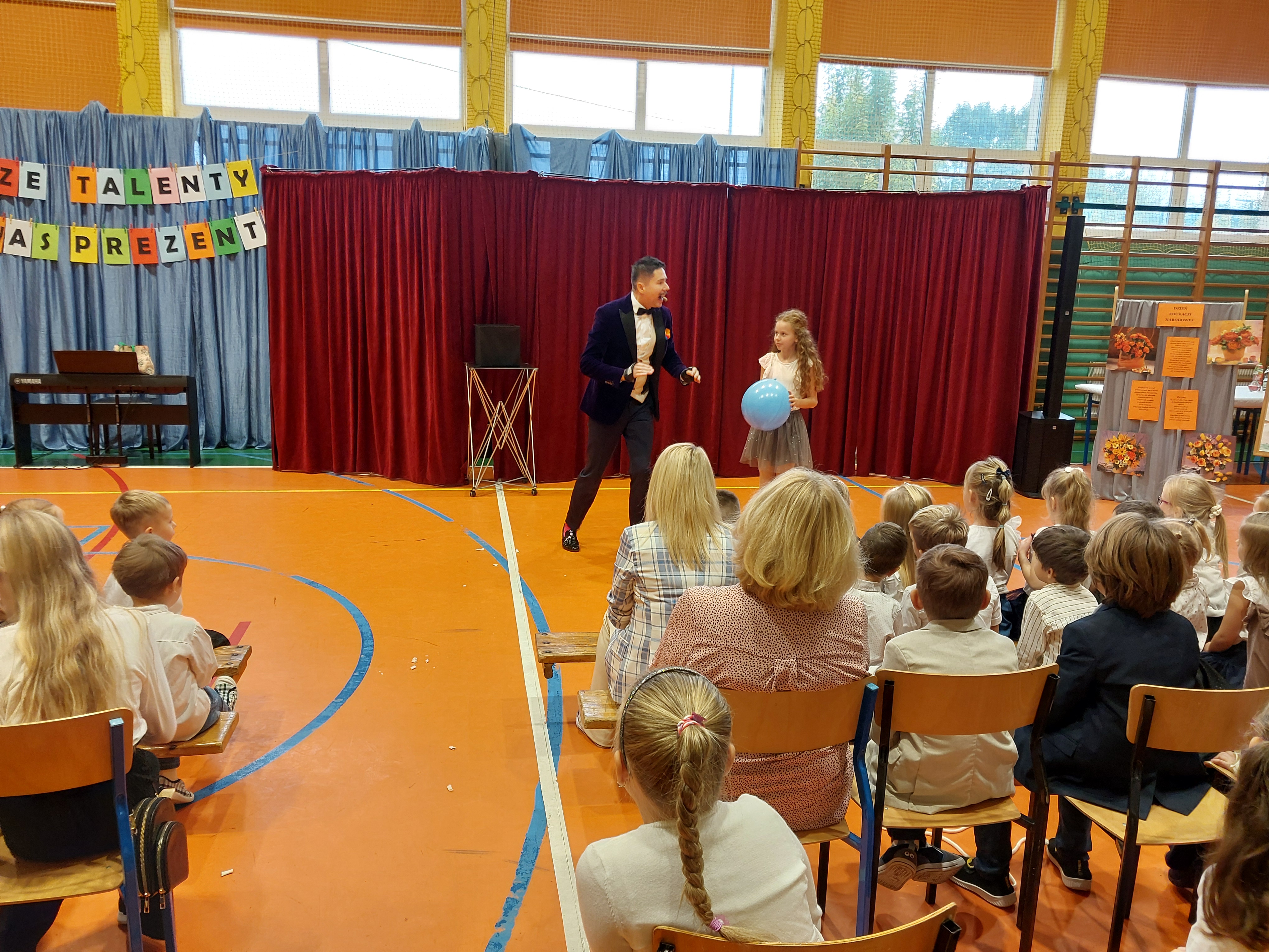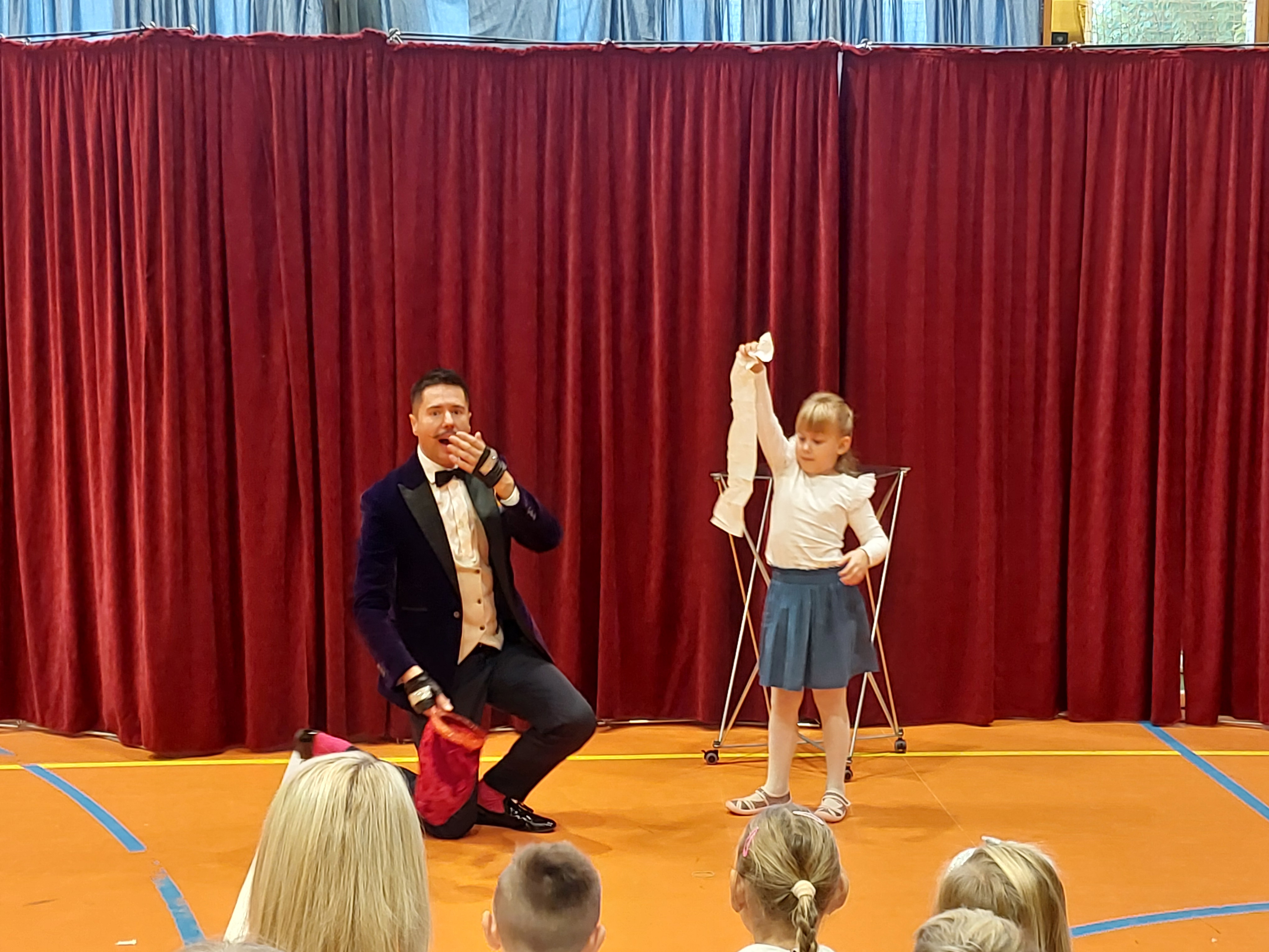 Swój talent zaprezentował także iluzjonista, prezentując ciekawy interaktywny program dla uczniów i przedszkolaków.