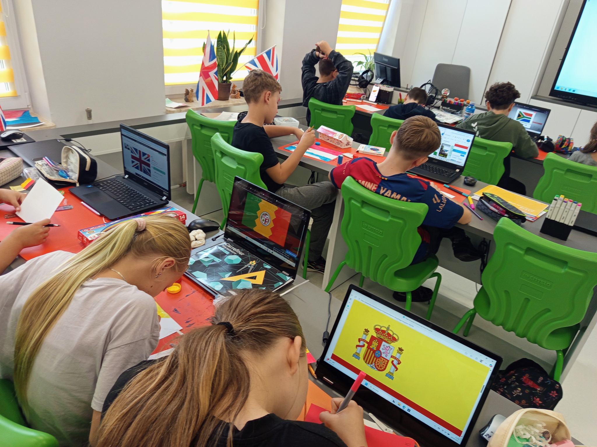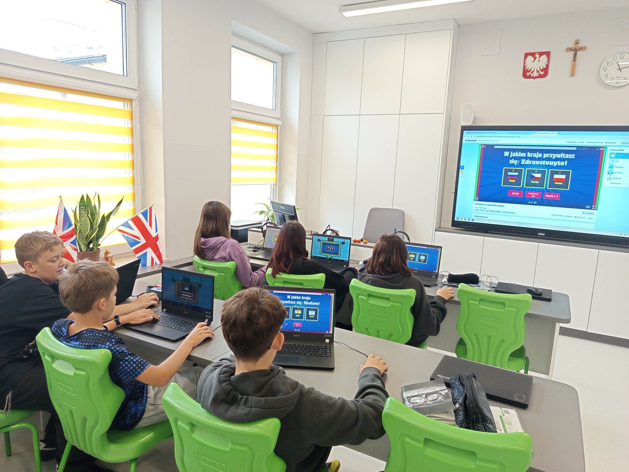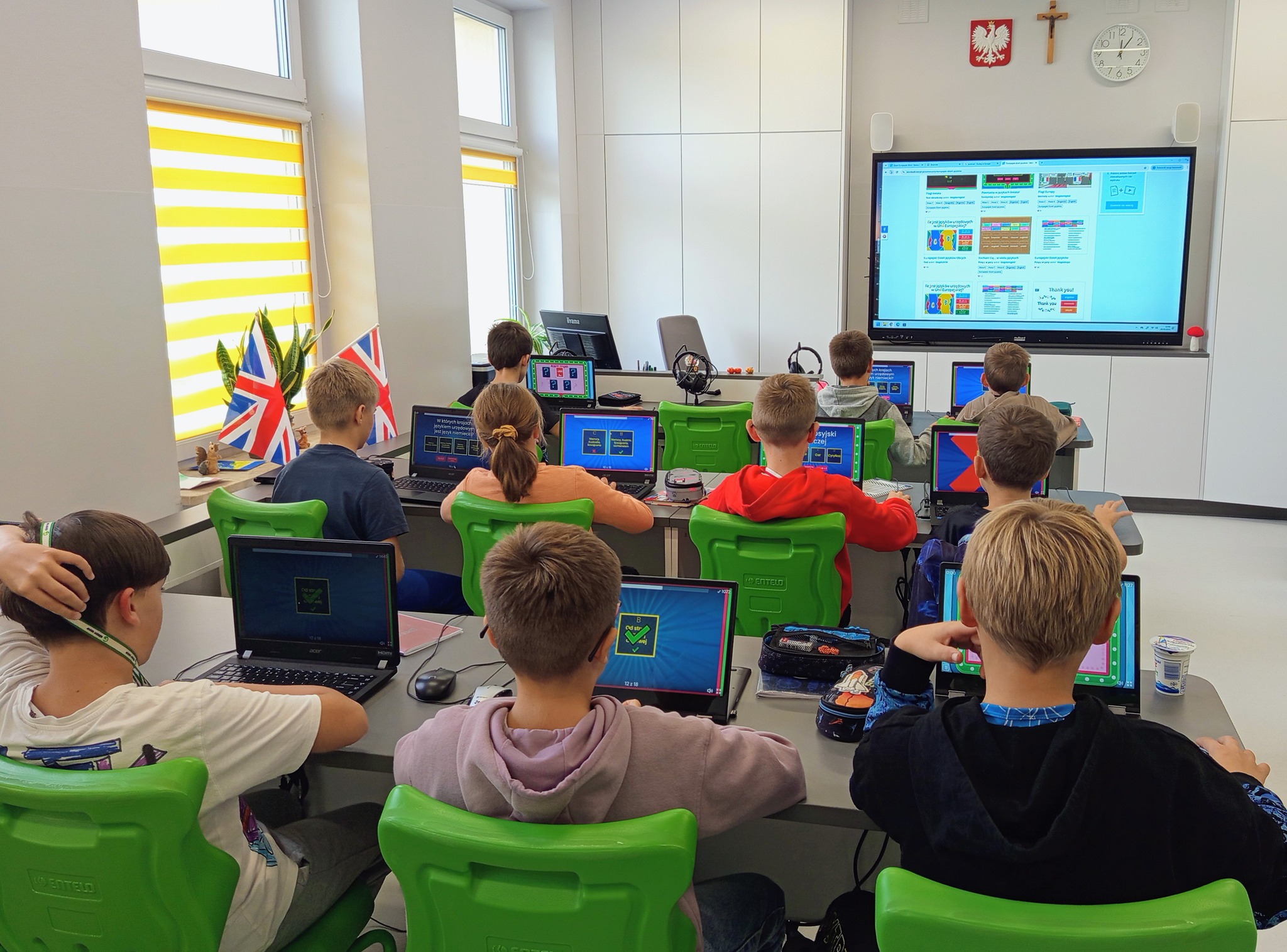 Od piątku 26 września przez cały tydzień świętowaliśmy Europejski Dzień Języków Obcych. Nasi najmłodsi uczniowie przebrali się za bajkowe postacie z różnych krajów i śpiewały piosenkę “Panie Janie” w 3 językach. Starsze klasy wykonały flagi, które ozdobiły szkolne korytarze. Wszyscy na zajęciach językowych rozwiązywali quizy i zagadki tematyczne. Dla klas 4-7 zorganizowano też konkurs: codziennie na gazetkach uczniowie mogli znaleźć kilka zagadek językowych . Odpowiedzi można było wrzucić do specjalnego pudełka do następnego dnia. Dla wszystkich uczestników przewidziano nagrody. Poniżej zdjęcia z imprezy.