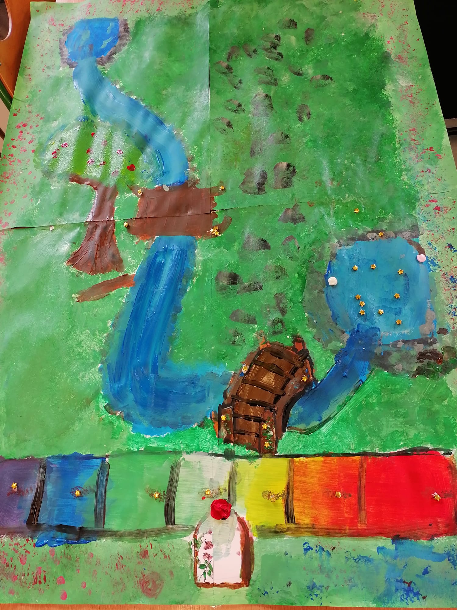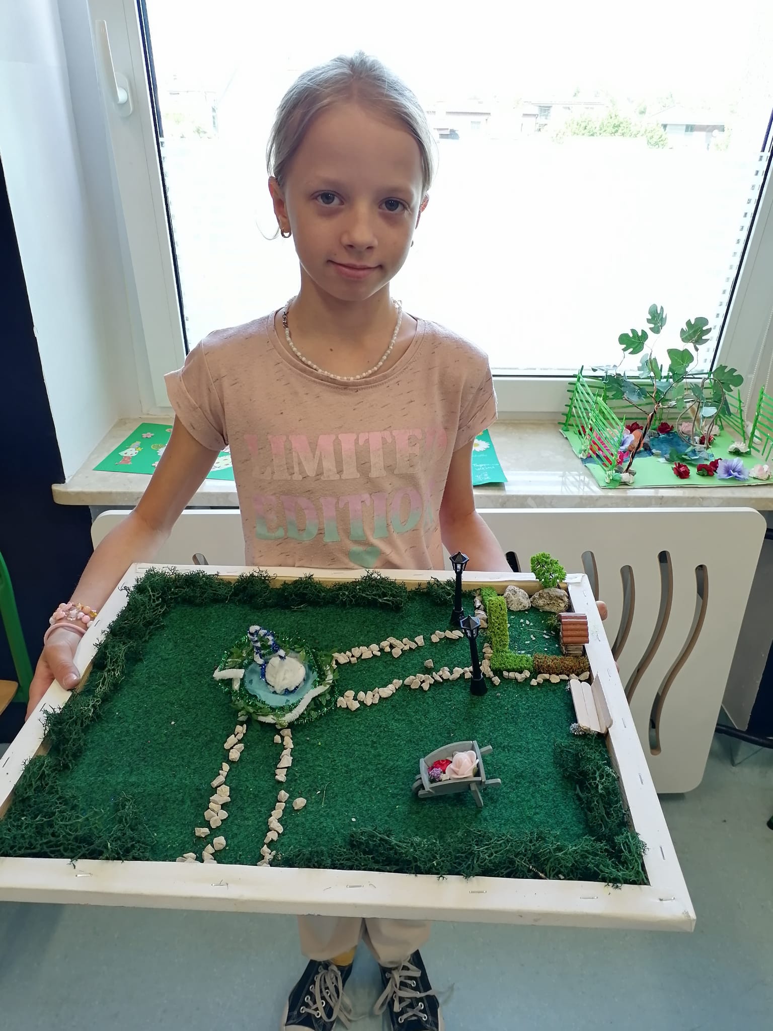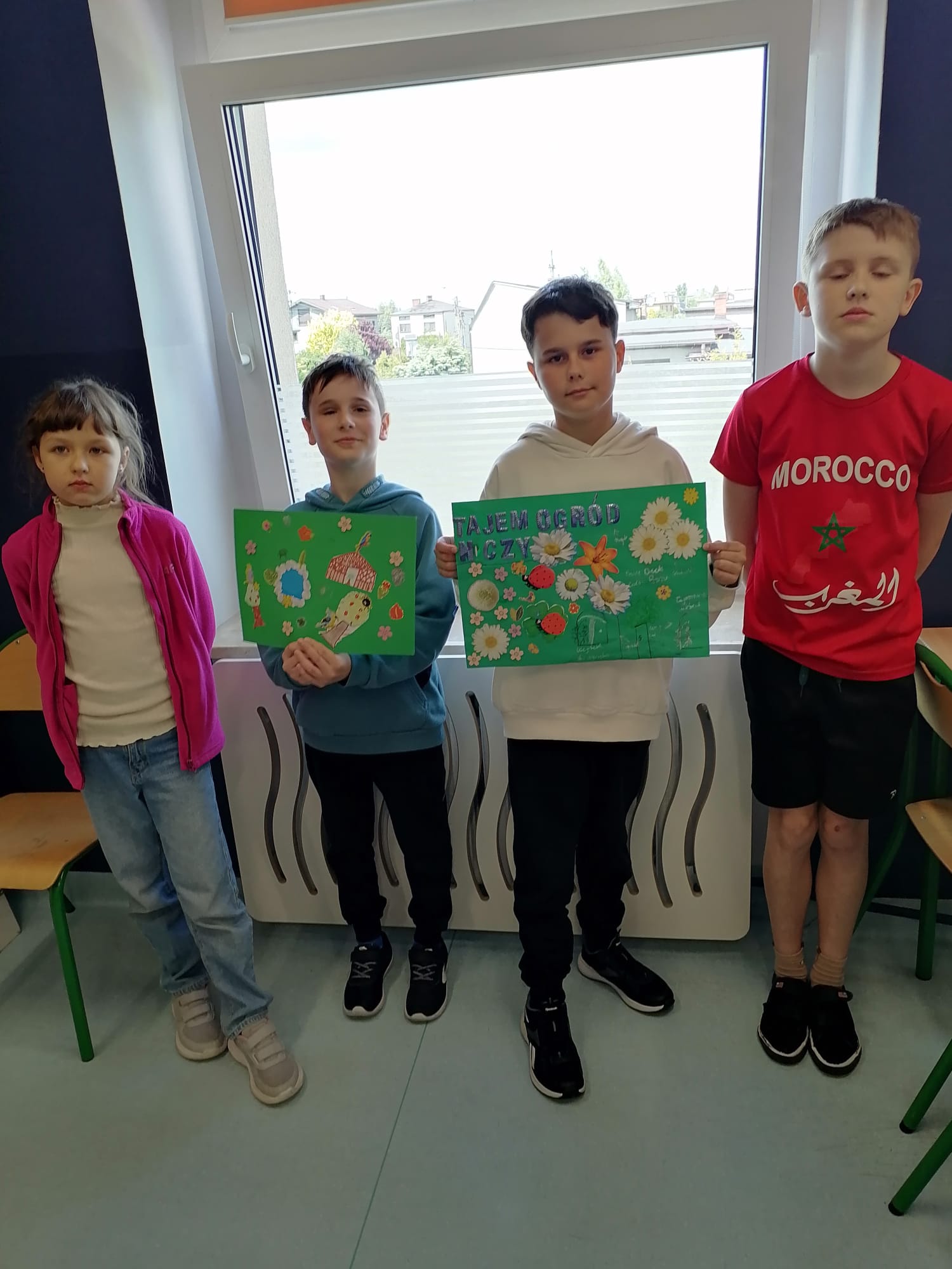 Uczniowie po przeczytaniu “Tajemniczego ogrodu” Frances Hodgson Burnett sprawdzali znajomość treści książki, wykonując zadania interaktywne na platformie edukacyjnej. Podczas zajęć z wychowawcą w sposób kreatywny tworzyli swoje tajemnicze ogrody, pracując w grupach. Wykorzystywali różne materiały plastyczne. Aby czas płynął w przyjemnej atmosferze, słuchaliśmy muzyki relaksacyjnej z odgłosami ptaków w ogrodzie. Te zajęcia odbywały się w miłej atmosferze i wpłynęły korzystnie na integrację uczniów.