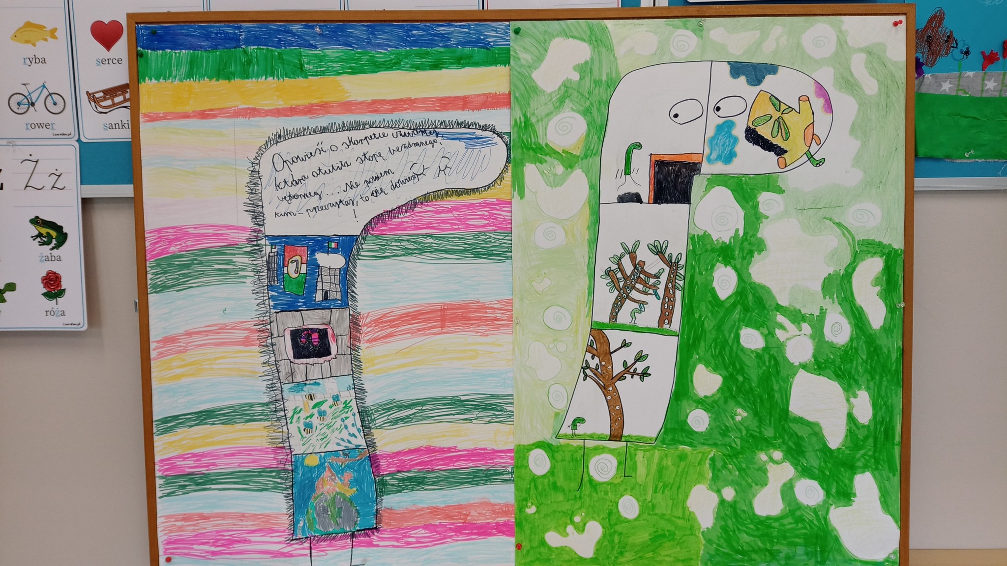 Końcowym etapem projektu edukacyjnego była wystawa prac plastycznych i głośne czytanie opowiadań.